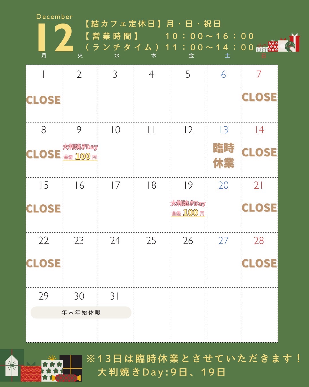 🎄大判焼きDay全品100円‼️ 9日(火)・19日(金)