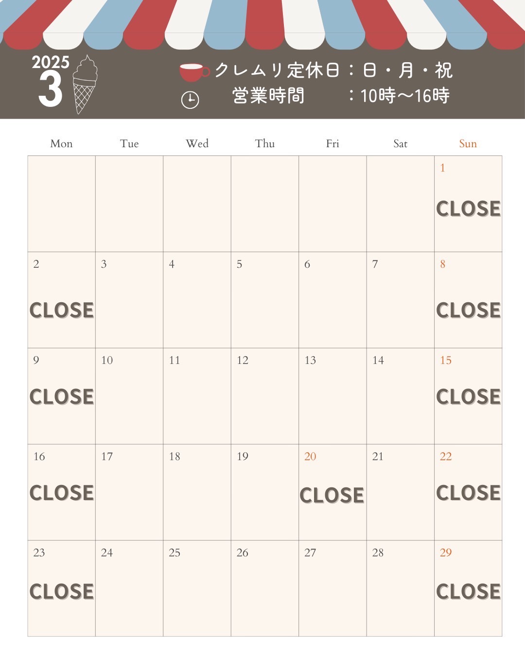 2026年3月の予定(クレムリ)
